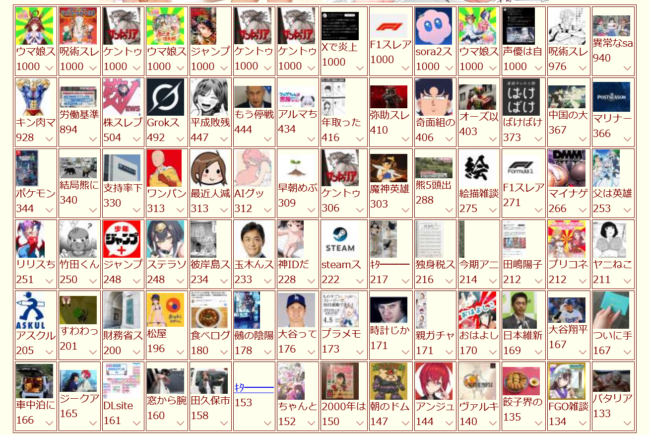 … | 13無念Nameとしあき25/10/20(月)09:14:12No.1360070726そうだねx1スレが何本1000になってんだよ草 |