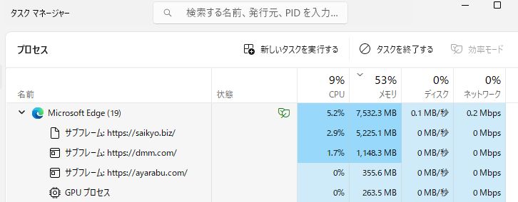 | … | 282無念Nameとしあき25/11/07(金)20:40:07No.1364457988+自分の環境だとぷにのタブ一つで8GB近く食ってるぷに |