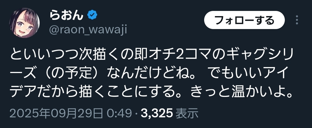 | … | 338無念Nameとしあき25/11/07(金)20:14:25No.1364450838そうだねx5 1762514065762.jpg-(32590 B) >セルフ打ち切りは辞めたほうがいいよな |