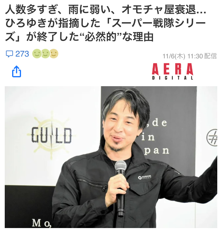 | … | 2無念Nameとしあき25/11/08(土)17:16:32No.1364657626+「今の子どもたちはスマホでゲームをしていて、オモチャ屋に行かなくなった」とも語り、莫大(ばくだい)なグッズ販売によって成立していた戦隊シリーズのビジネスモデルが崩壊しているとの見方を示している。 |