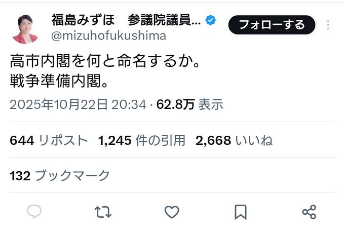 | … | 63無念Nameとしあき25/11/09(日)00:13:47No.1364776358+パヨク連中がまた軍靴の音が聞こえるって喚いてそう |