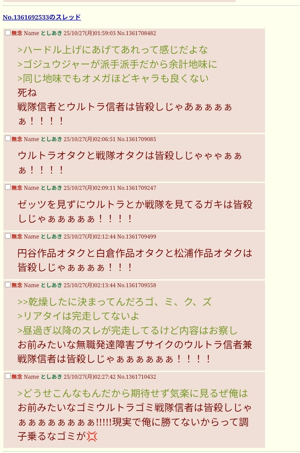 | … | 23無念Nameとしあき25/11/10(月)12:57:47No.1365131273そうだねx2合わせてdelしたいスレ |