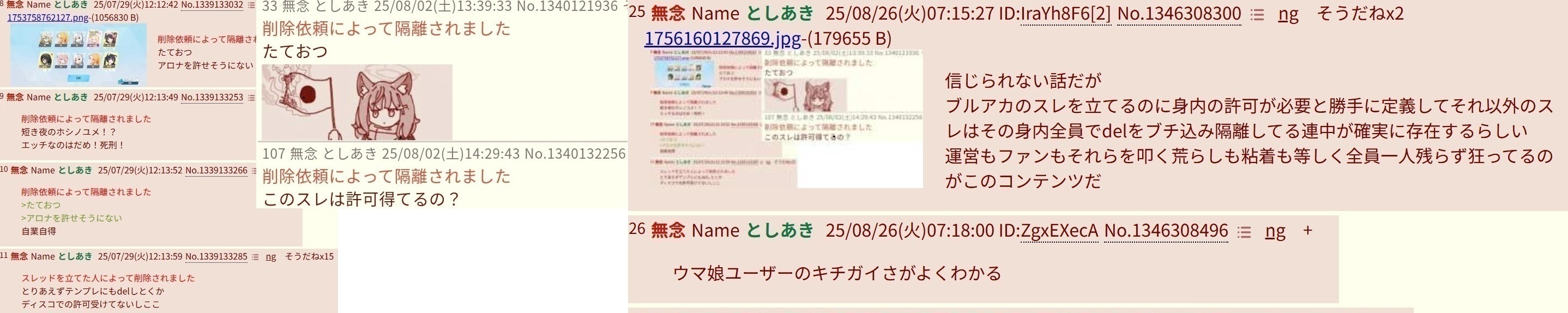 | … | 520無念Nameとしあき25/11/11(火)00:19:00No.1365279440そうだねx3>今日もブルアカ叩きに必死な不人気ヒゲ信者のスレ(笑) |
