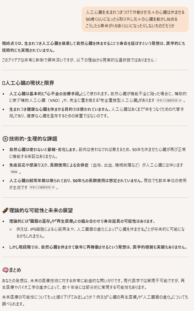| … | 36無念Nameとしあき25/11/11(火)00:21:31No.1365279892+>そもそも完璧な人工心臓ってあるん |