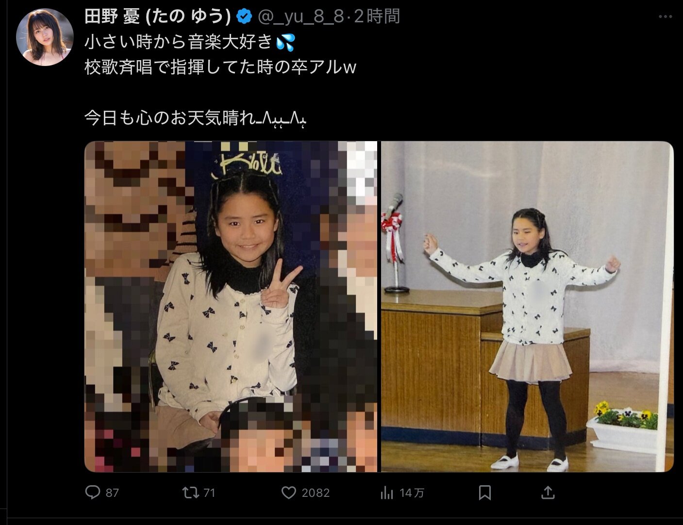 | … | 55無念Nameとしあき25/11/11(火)01:41:20No.1365289710+小学校の時から顔整ってるなあ |