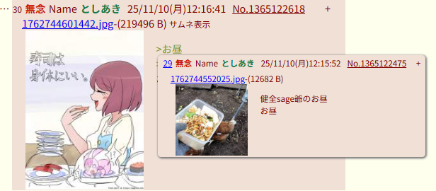 | … | 26無念Nameとしあき25/11/11(火)12:06:22No.1365338049そうだねx6 1762830382407.jpg-(181220 B) お昼 |