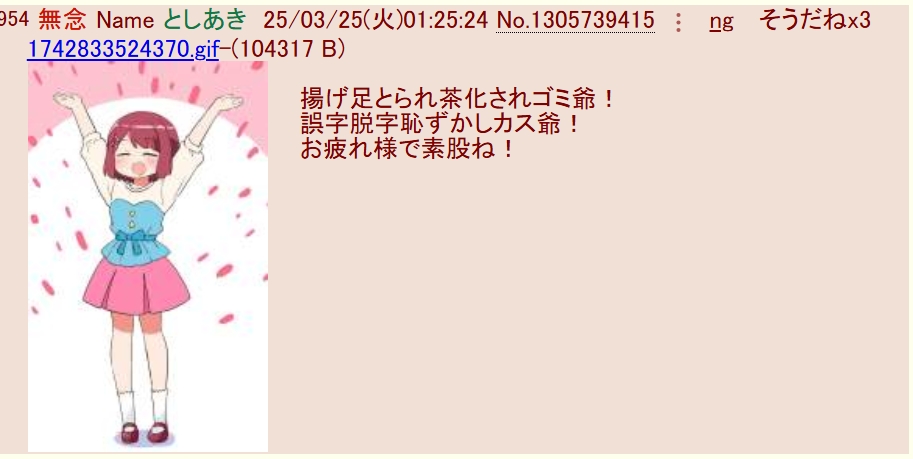| … | 2無念Nameとしあき25/11/11(火)08:53:55No.1365314245そうだねx17おはAI画像乞食スレ乱立爺 |