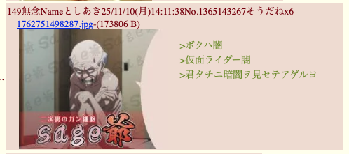 | … | 341無念Nameとしあき25/11/11(火)16:42:56No.1365381516そうだねx2 1762846976753.png-(90197 B) >仮面ライダー闇 |