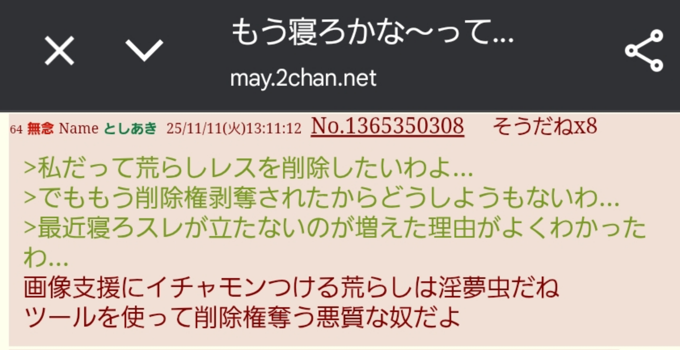 | … | 2無念Nameとしあき25/11/11(火)09:14:14No.1365316203そうだねx11>死ね |
