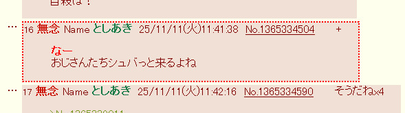 | … | 12無念Nameとしあき25/11/11(火)11:32:50No.1365333390そうだねx1>>一日中二次裏の監視ですか? |