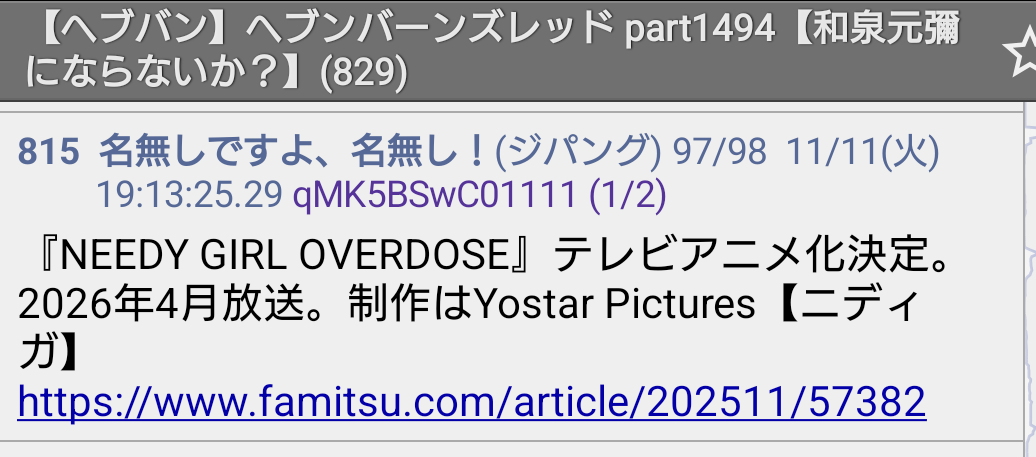 | … | 14無念Nameとしあき25/11/11(火)20:05:16No.1365426081そうだねx4 1762859116418.jpg-(59563 B) >2期の兆しだよ! |