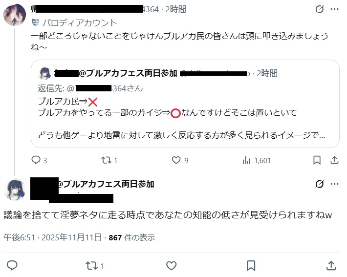 | … | 48無念Nameとしあき25/11/11(火)20:15:03No.1365428941+>>イキってたらブルアカ名指し減収と次期も減収予測が飛んできた |