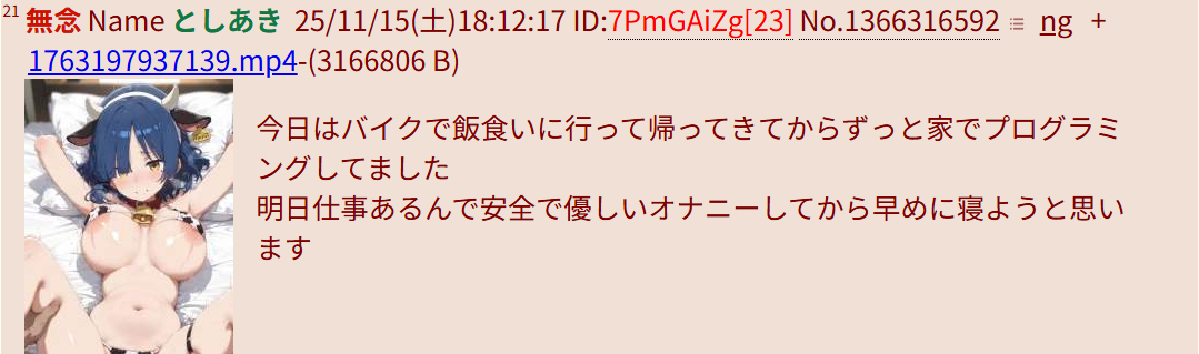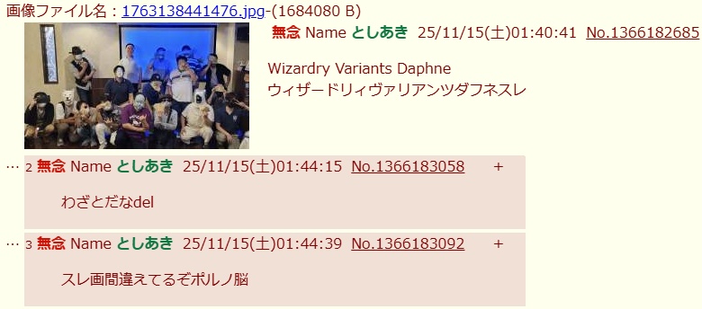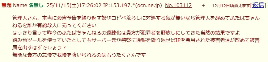 | … | 303無念Nameとしあき25/11/15(土)19:26:05No.1366337166+自演壁打ちスレ |