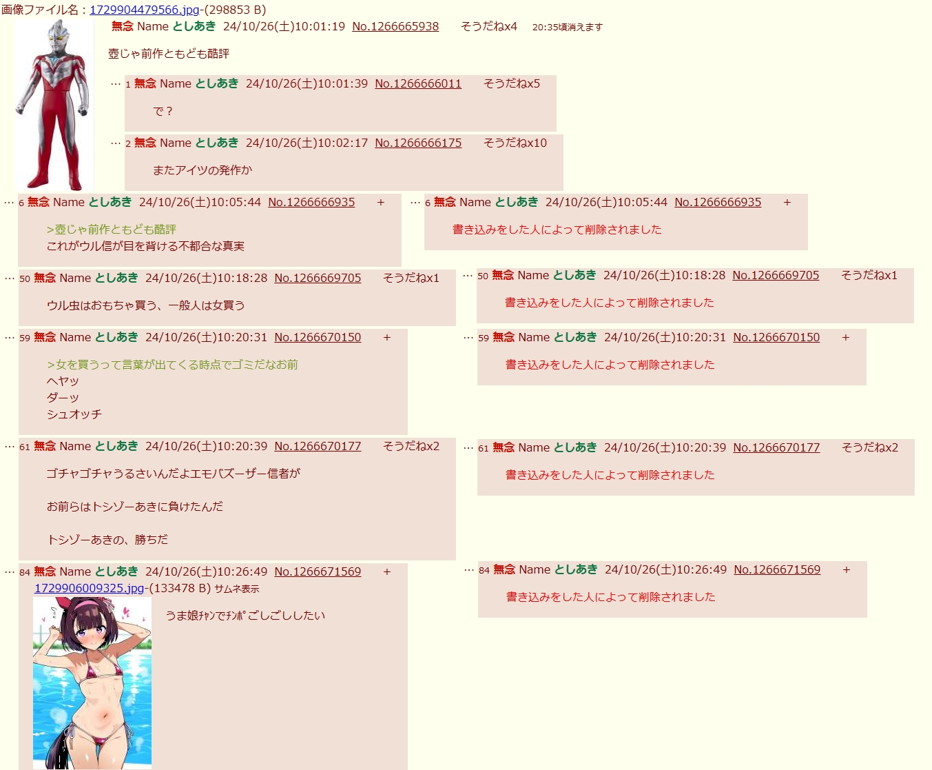 | … | 305無念Nameとしあき25/11/15(土)19:26:45No.1366337362+荒らしの泣き言スレ |