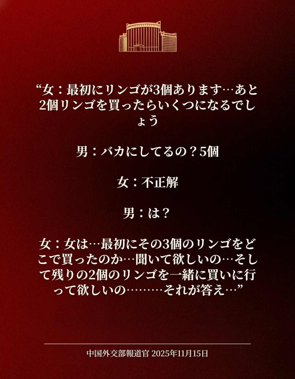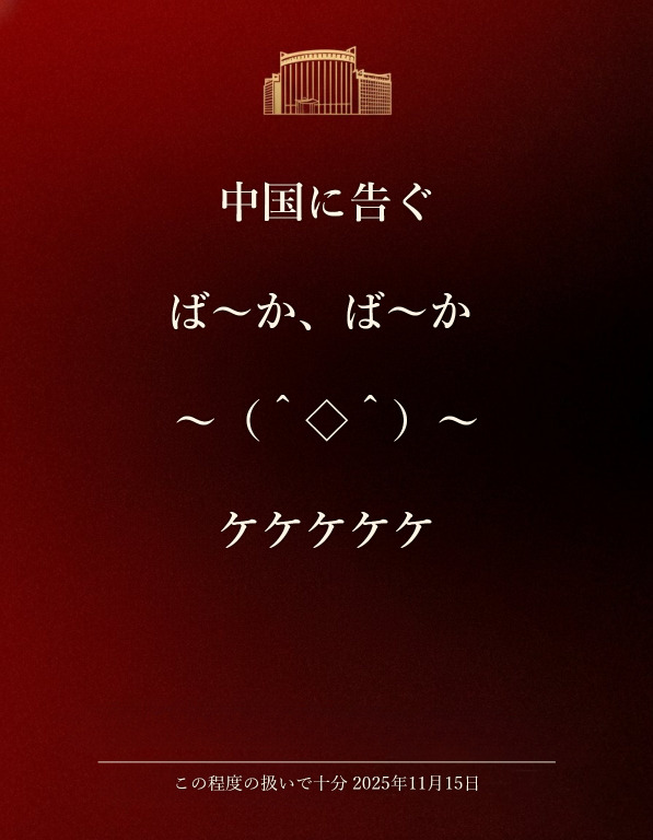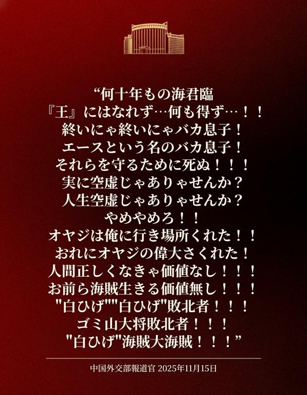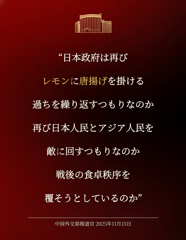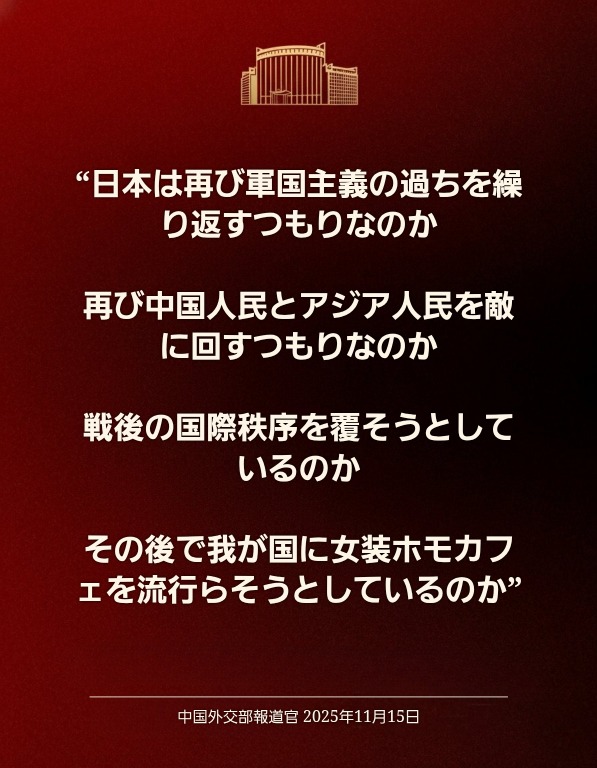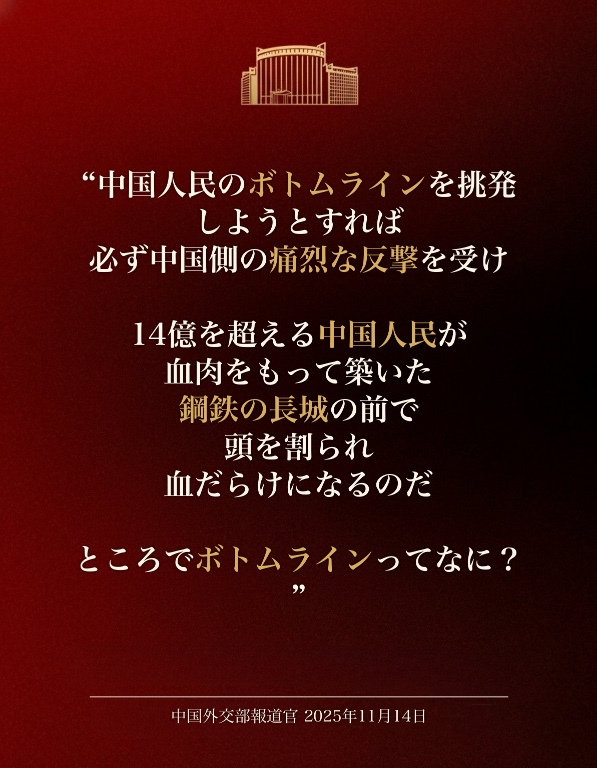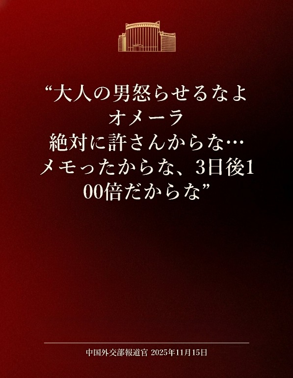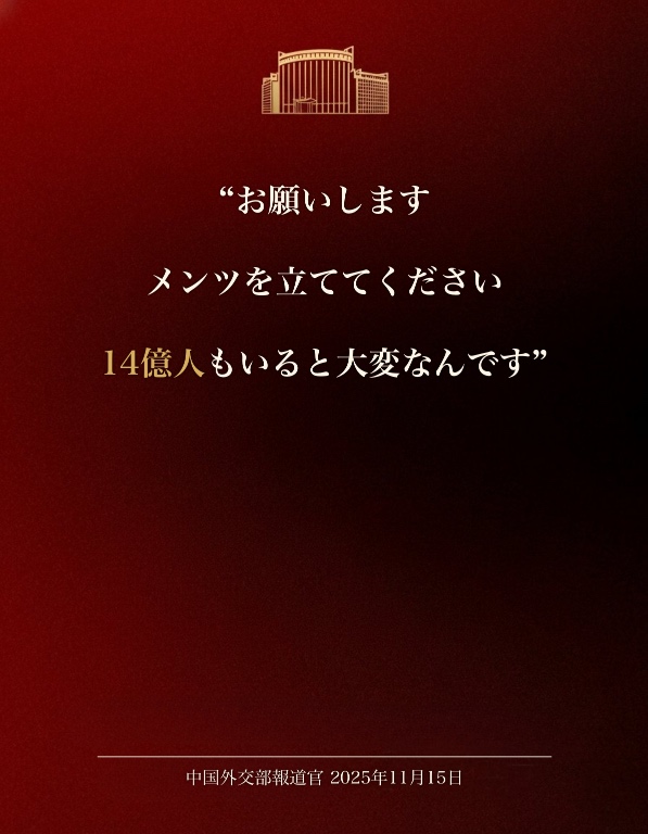 | … | 180無念Nameとしあき25/11/15(土)19:11:58No.1366333195そうだねx2 1763201518337.jpg-(116703 B) >中国外交部はメンツが潰れたみたいな態度とってるけど |