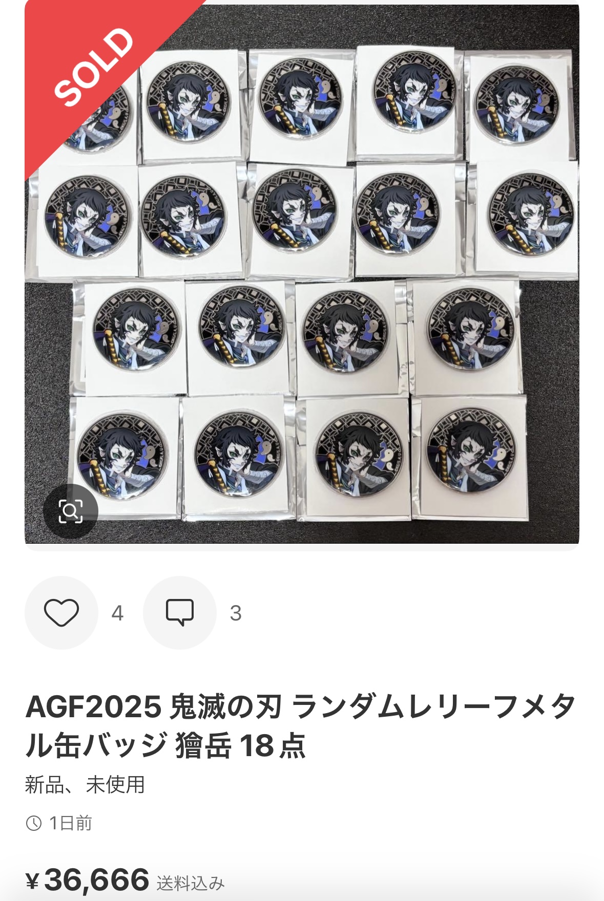 | … | 71無念Nameとしあき25/11/16(日)02:58:40No.1366447164+>童磨の缶バッジとか1個で3万超えてるし |