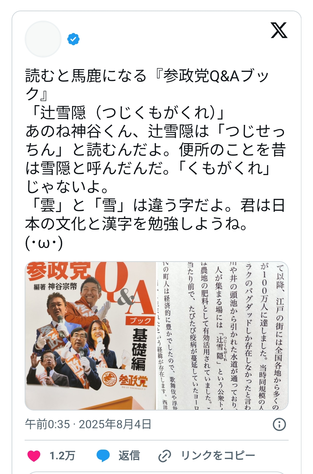 | … | 83無念Nameとしあき25/11/18(火)10:14:14No.1366943025そうだねx2 1763428454353.jpg-(91410 B) 参政党の神谷先生は高度な知性の持ち主なんだよ |