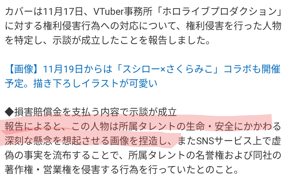 ホロライブタレントの虚偽の事実の流布、安全にかかわる画像を捏造していた被告に