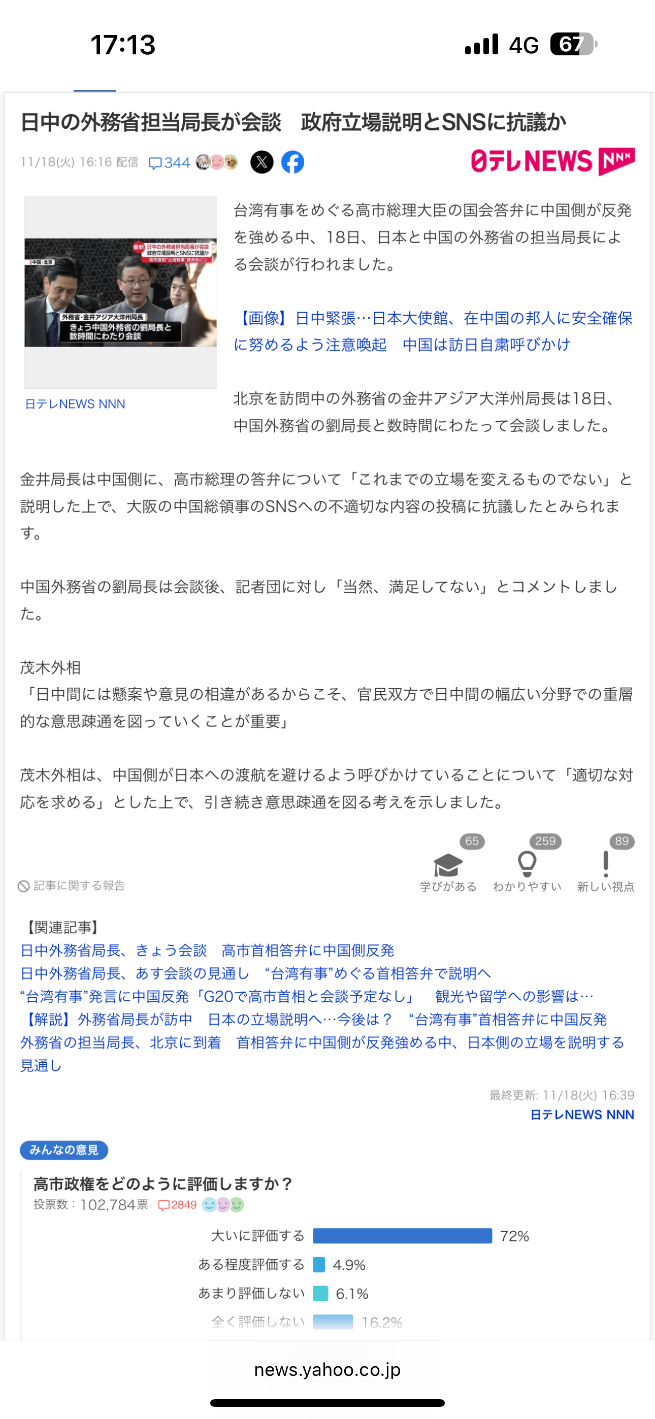 | … | 961無念Nameとしあき25/11/18(火)18:29:24No.1367020925+>岸「政府としてのコメントは差し控える」 |