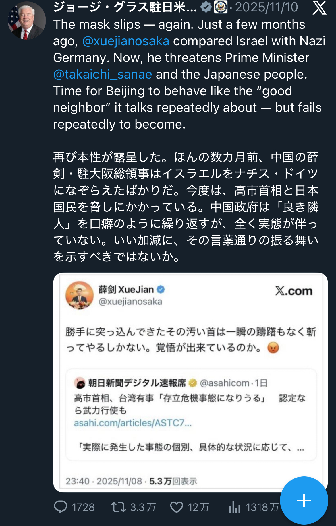 | … | 87無念Nameとしあき25/11/18(火)17:25:04No.1367008298+台湾とは明言してないんだよなぁ |