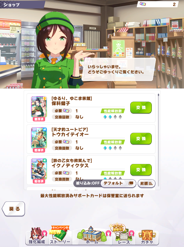 | … | 17無念Nameとしあき25/11/18(火)20:33:22 ID:Y.pBn8mgNo.1367053377+200で女将1のテイオーさん3だったので交換はテイオーさんにしましたわ |