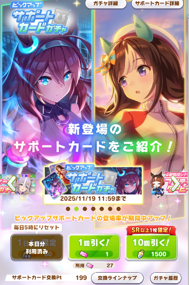 | … | 29無念Nameとしあき25/11/18(火)21:12:13 ID:8kQedaWQNo.1367067717そうだねx1そういえば君臨が取れる追込のパワサポを引いて持ってた気がしますわ… |