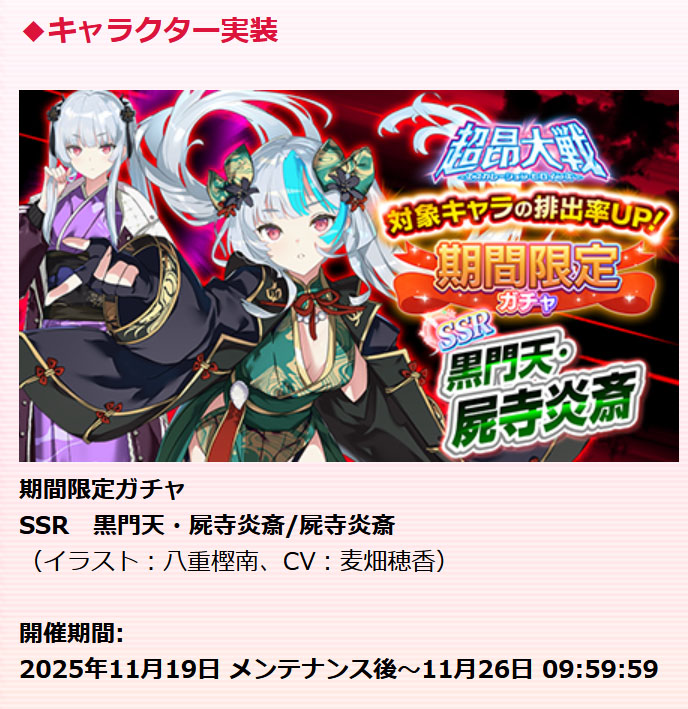 | … | 3無念Nameとしあき25/11/18(火)20:37:30No.1367054861そうだねx2 1763465850231.jpg-(191928 B) 明日のガチャ更新は限定炎斎 |