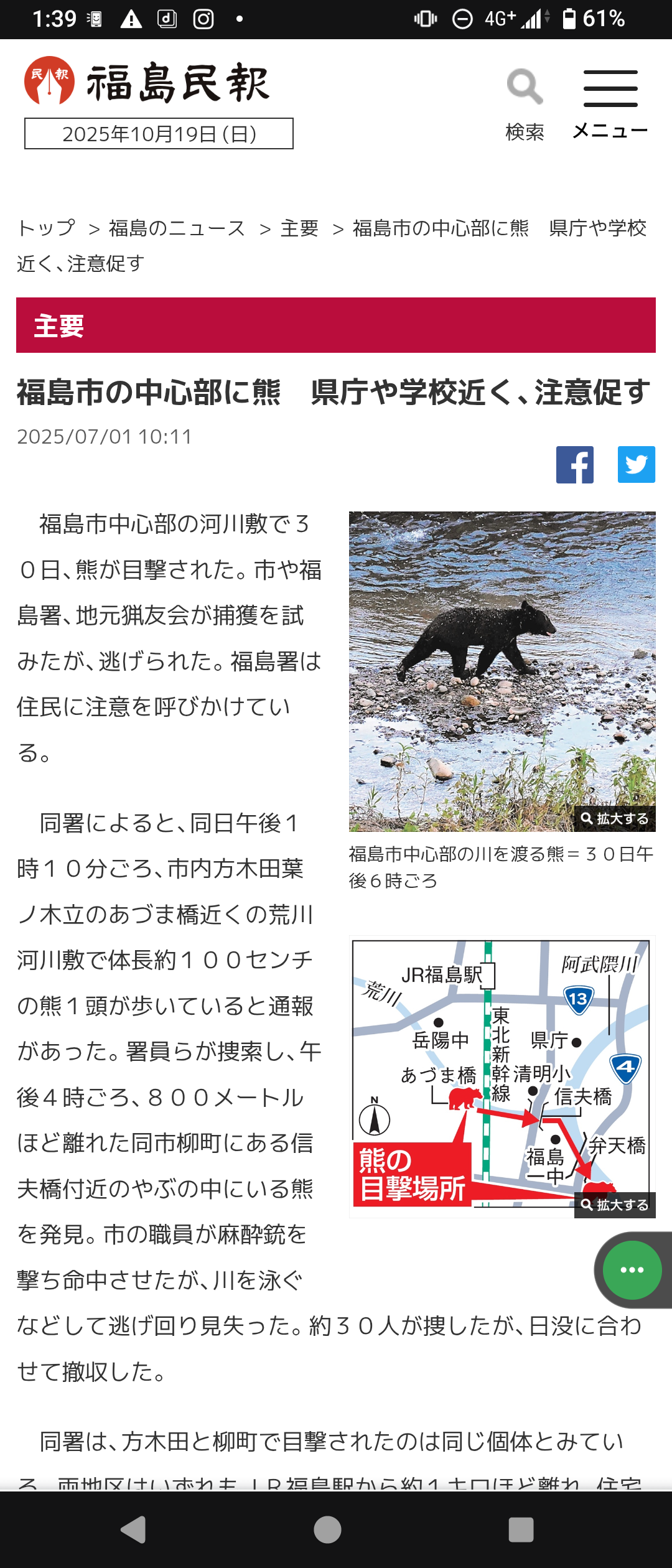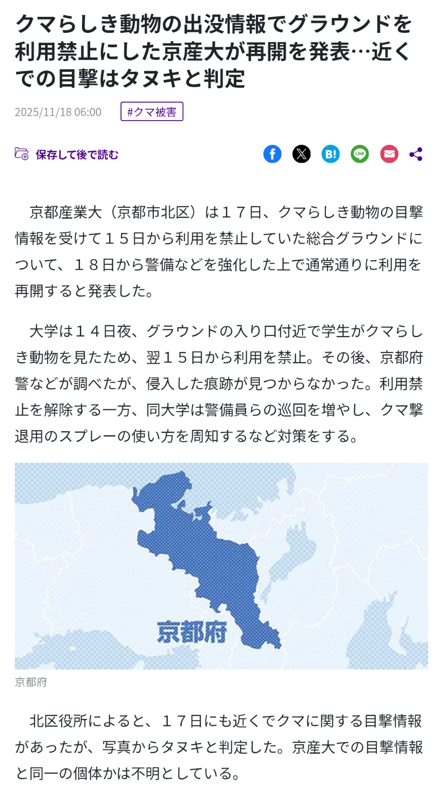 | … | 30無念Nameとしあき25/11/19(水)21:01:01No.1367293350そうだねx1 1763553661995.jpg-(9710 B) >京都市伏見区の住宅街の河川敷に「クマらしき黒い動物」ランニング中の中学生目撃 |