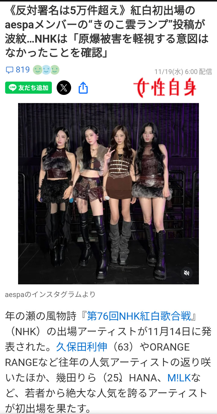 | … | 8無念Nameとしあき25/11/19(水)21:17:37No.1367298601そうだねx7>>紅白って炎上商法好きだよね |