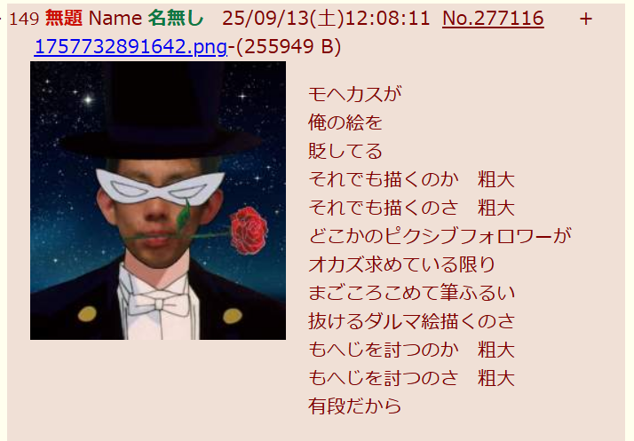 | … | 47無念Nameとしあき25/11/20(木)11:21:12No.1367399349そうだねx3>何これキモい |
