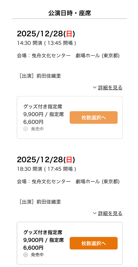 | … | 22無念Nameとしあき25/11/20(木)11:14:48No.1367398495そうだねx2 1763604888538.jpg-(157342 B) https://t.pia.jp/pia/ticketInformation.do?eventCd=2533529&rlsCd=001&lotRlsCd= |