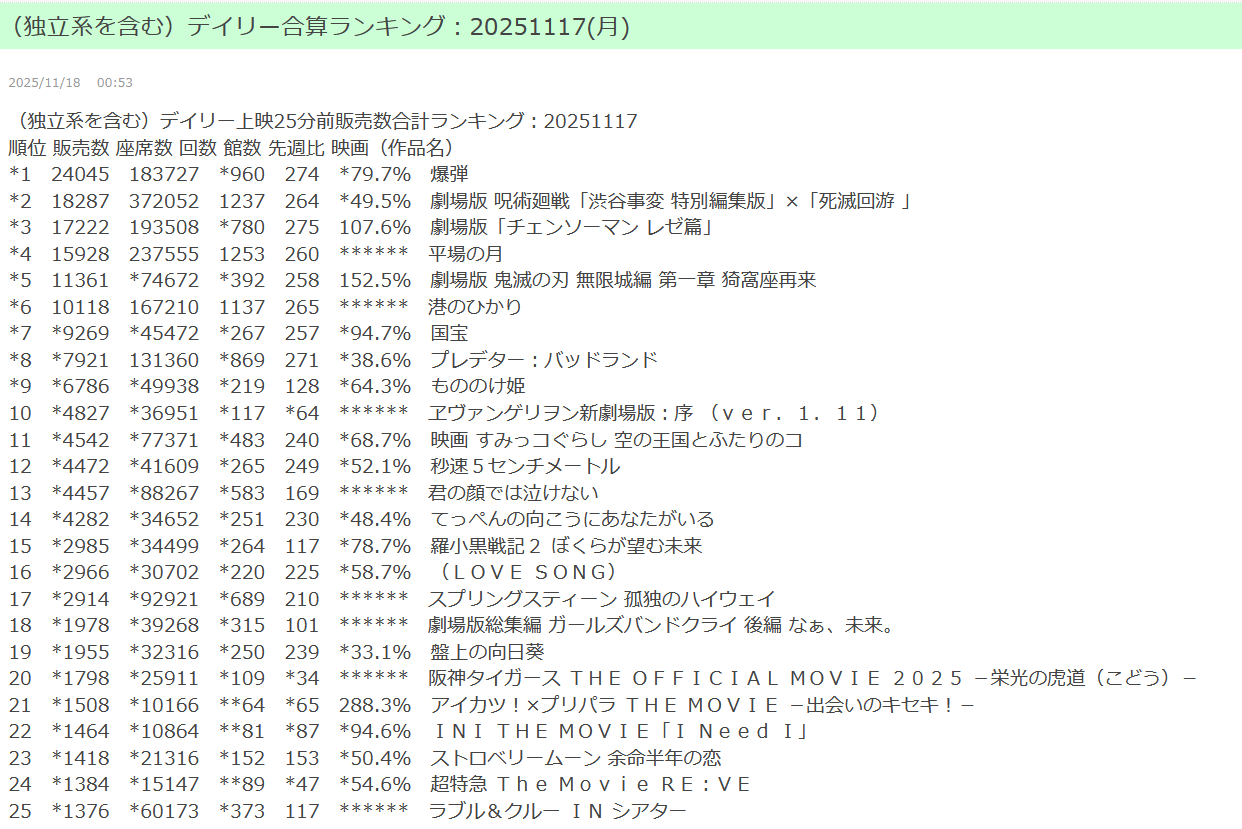 | … | 68無念Nameとしあき25/11/20(木)13:34:44No.1367422494そうだねx2>公開10日でTOP25圏外… |