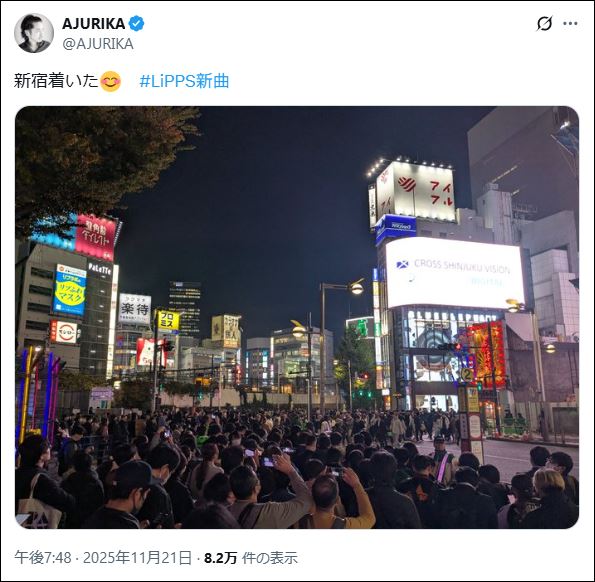 | … | 21無念Nameとしあき25/11/21(金)22:40:34No.1367752246そうだねx1 1763732434171.jpg-(68741 B) AJURIKAさん新宿行ってたんやなしかしすごい人だ |
