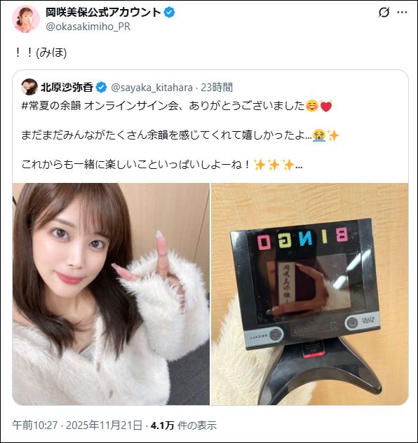 | … | 25無念Nameとしあき25/11/21(金)22:48:21No.1367754500+ 1763732901619.jpg-(64236 B) さや姉のポストに驚くおみほ |