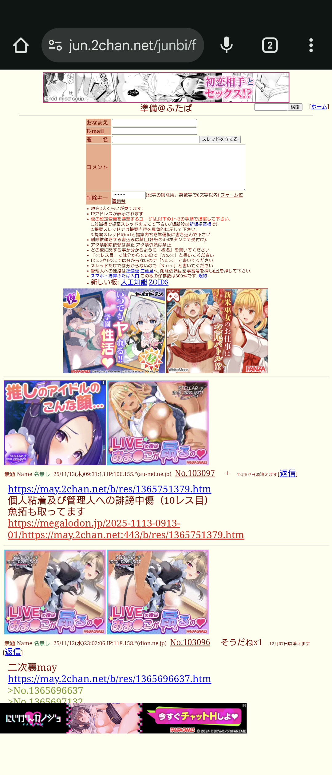 | … | 66無念Nameとしあき25/11/22(土)00:13:05No.1367776608+妄想や願望を垂れ流してる奴ならレス隔離されてるぞ |