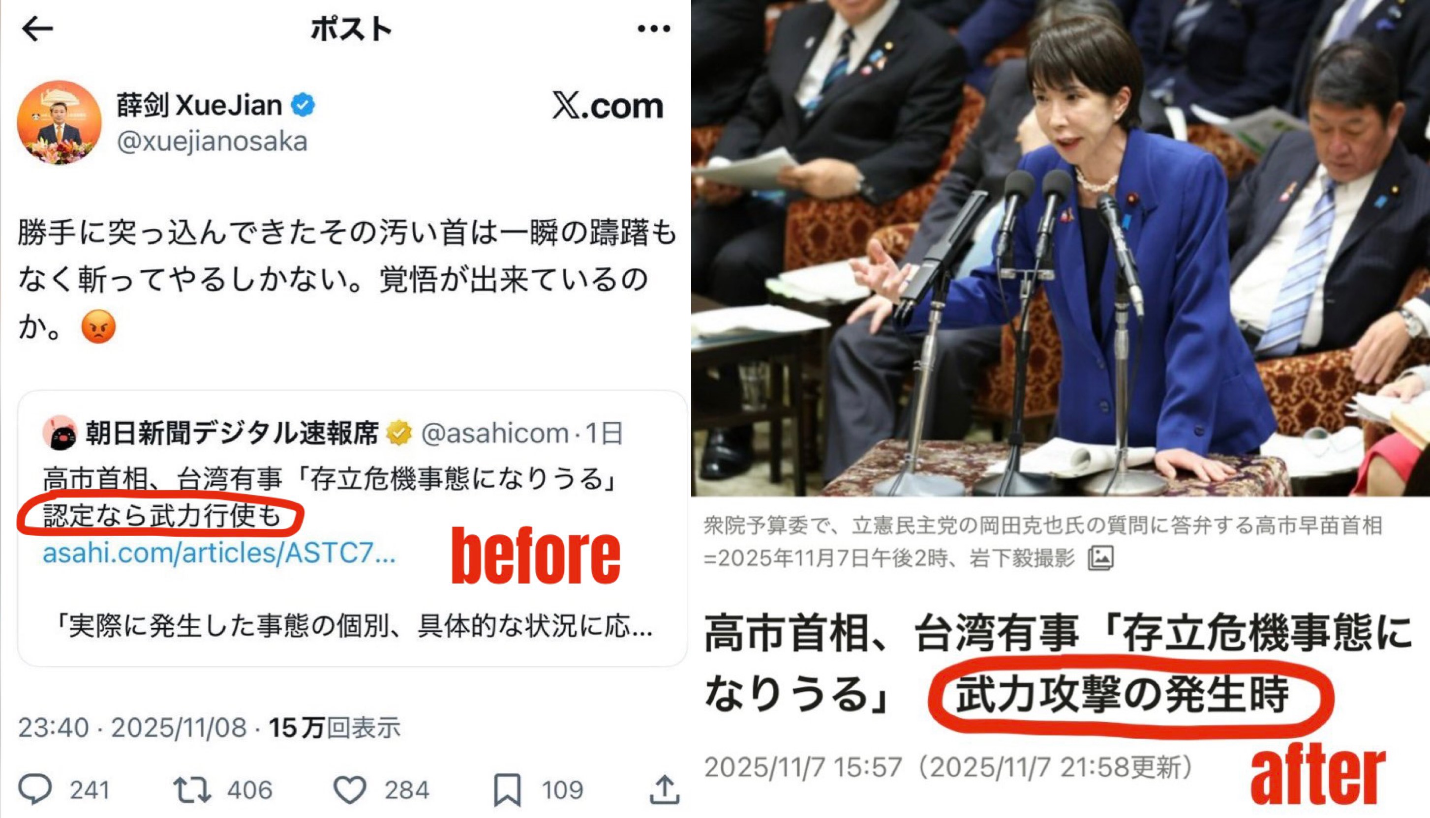 | … | 23無念Nameとしあき25/11/22(土)05:38:33No.1367805093+何が何でも高市を引きずり下ろしたいからですよ |