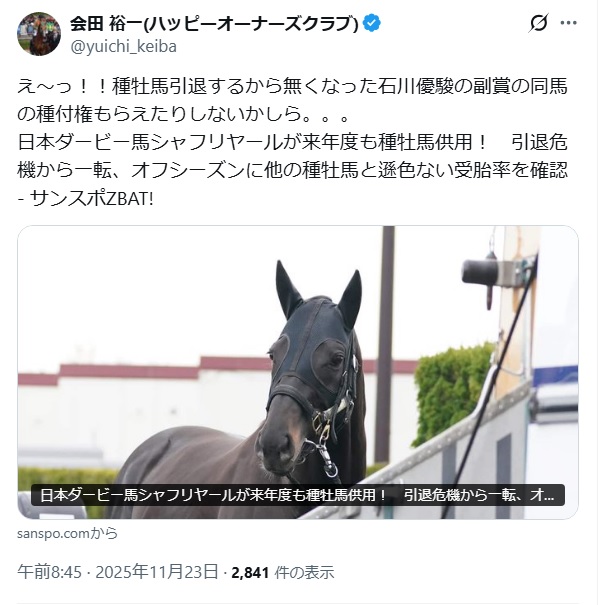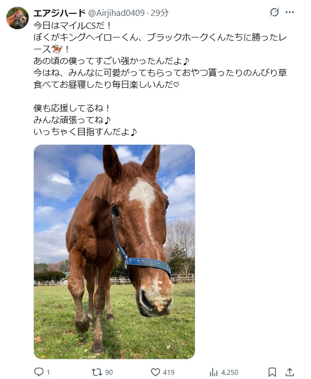 | … | 624無念Nameとしあき25/11/23(日)14:34:50No.1368147715+現地見てるとスキップ踏んでるお馬さん可愛い〜ってなる |