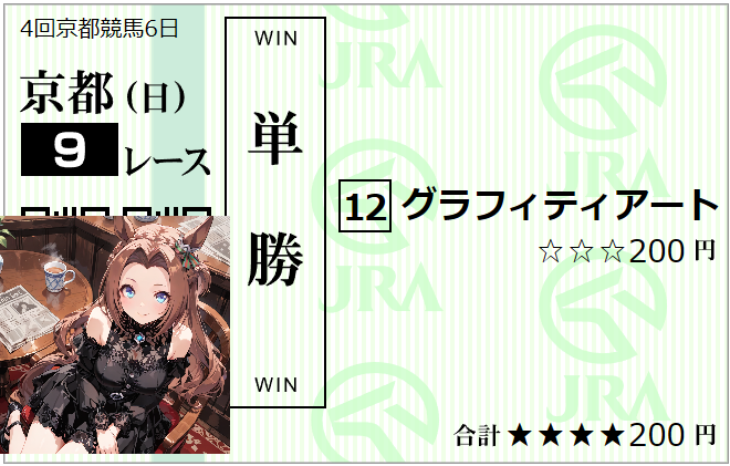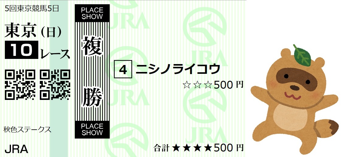 | … | 688無念Nameとしあき25/11/23(日)14:44:43No.1368149830+ 1763876683573.jpg-(170502 B) 東京10Rは4番ニシノライコウの単勝100円複勝500円だべ |