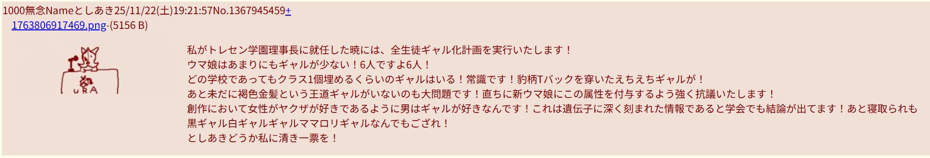 | … | 672無念Nameとしあき25/11/23(日)14:43:06No.1368149478+>>>ウマ娘にはギャルが足りない・・・ |
