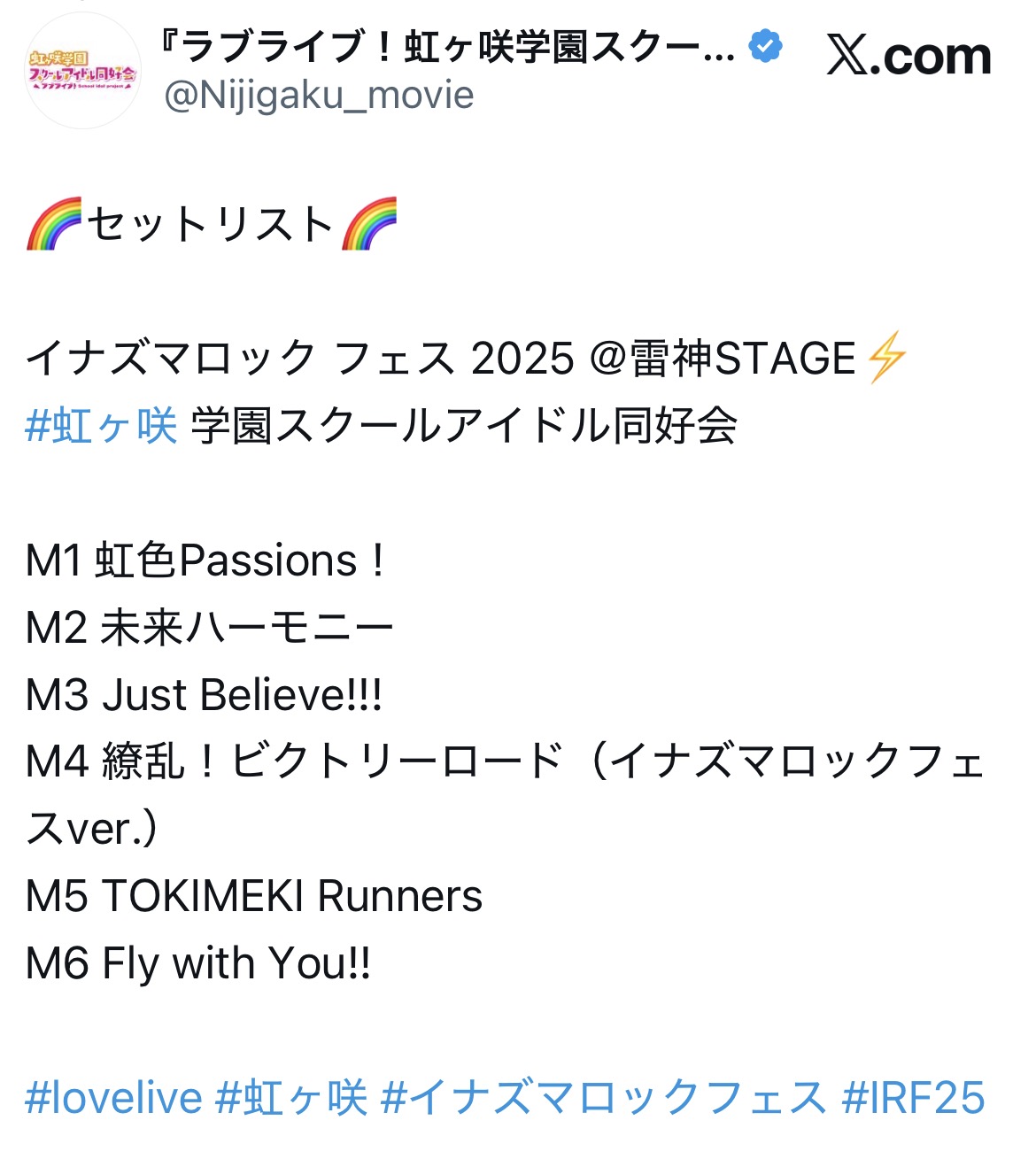 | … | 17無念Nameとしあき25/11/23(日)19:03:40 IP:106.146.*(au-net.ne.jp)No.1368214275+21時からCSフジテレビTWOでニジガクのイナズマロックフェス! |