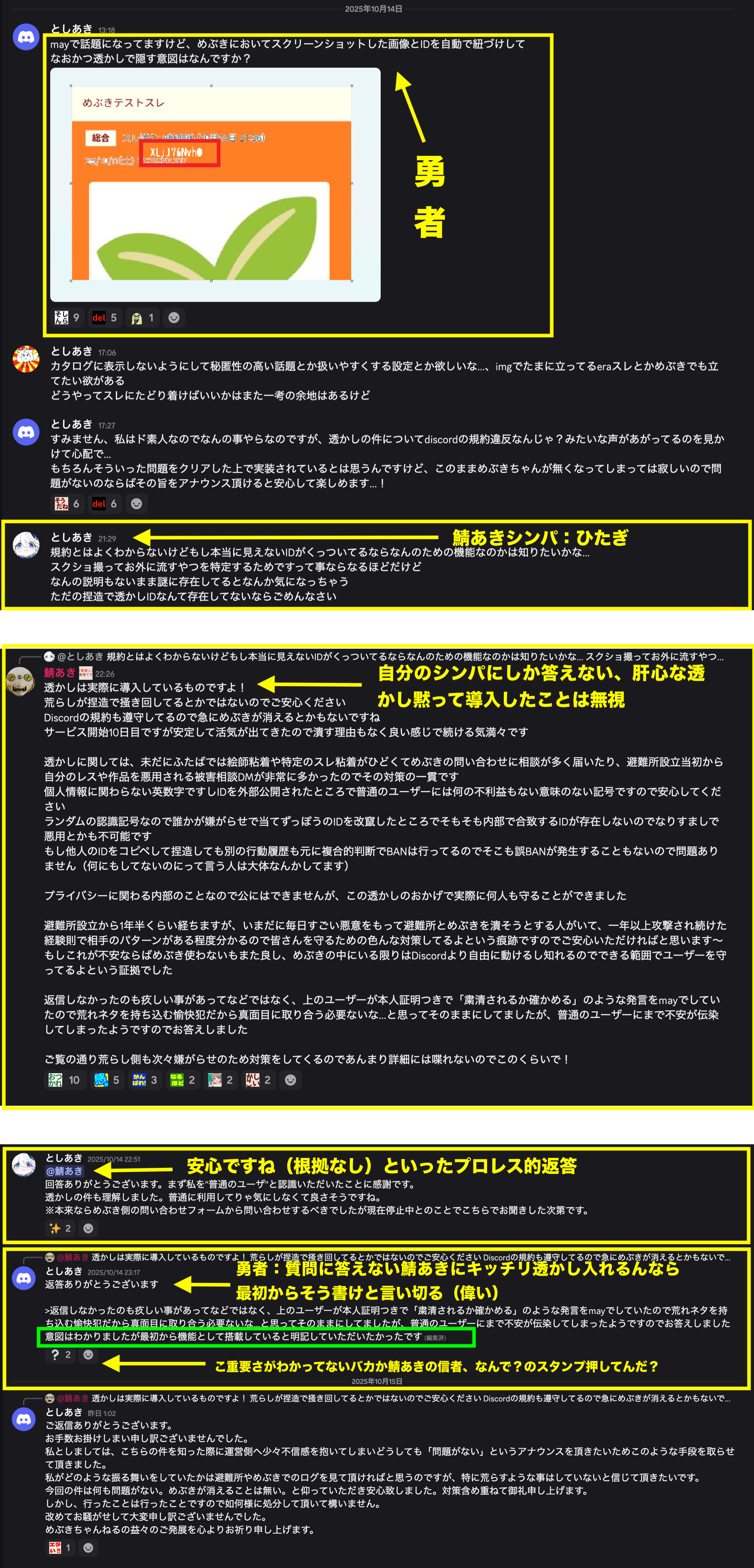 | … | 588無念Nameとしあき25/11/24(月)20:07:50No.1368492863そうだねx1ディスコの規約曲解して避難所すらスクショ自体を禁止にしたのからして |