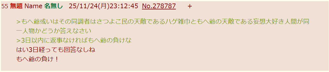 | … | 16無念Nameとしあき25/11/24(月)23:49:01No.1368559846そうだねx3 1763995741331.png-(45197 B) 粘着相手のいない場所でコソコソ条件出して勝利宣言 |