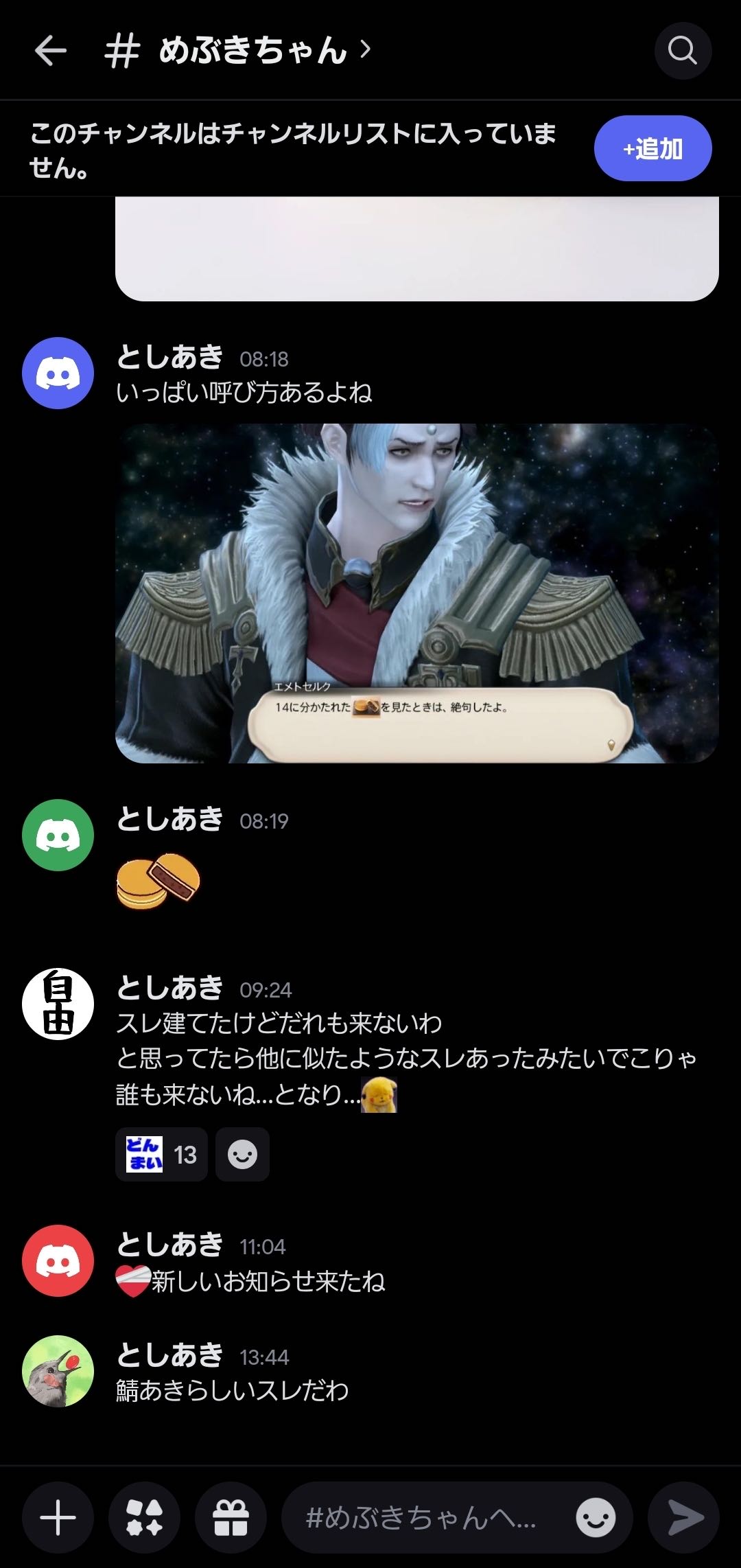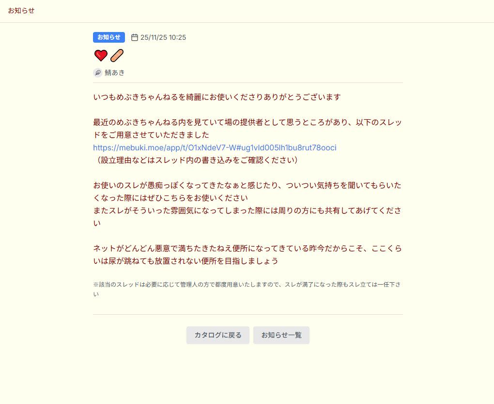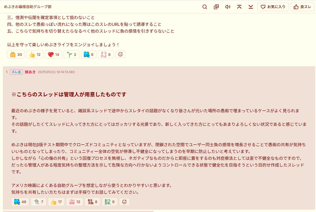 | … | 81無念Nameとしあき25/11/25(火)13:30:14No.1368641507+>めぶきが過疎ってこっちの愚痴ばっかになって鯖あきがお気持ち表明してるからよ… |