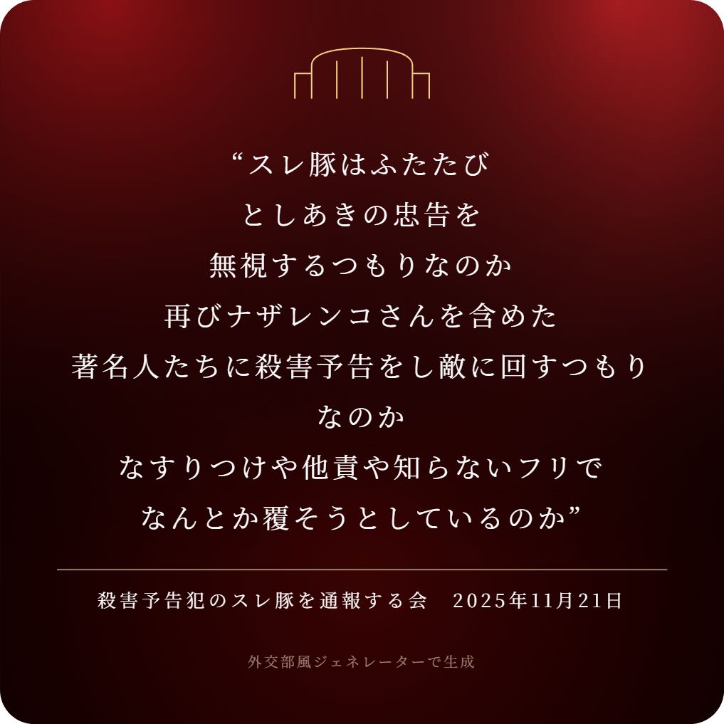 | … | 92無念Nameとしあき25/11/25(火)13:38:14No.1368642818+ 1764045494833.png-(618335 B) >警察に通報したらここの奴らもビビって大人しくなるかもしれんな |