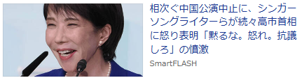 | … | 980無念Nameとしあき25/11/26(水)08:29:51No.1368817622+高石発言には適当に軽めの中国版遺憾砲1発撃っとけば良かったのに首切断発言で炎上しちゃった |