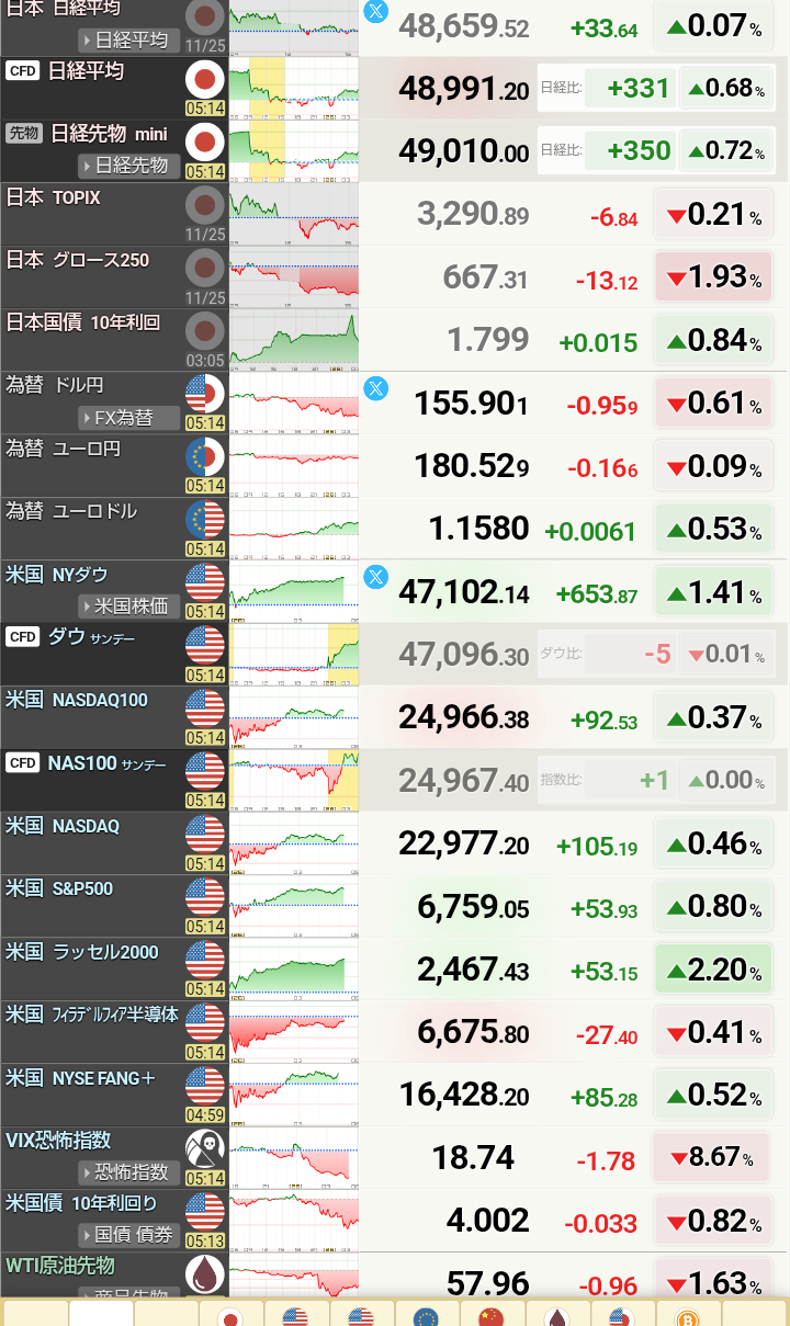 | … | 16無念Nameとしあき25/11/26(水)01:56:10 ID:rPoHgb9QNo.1368796495そうだねx2ソックス指数下がってるのに先物強いので |