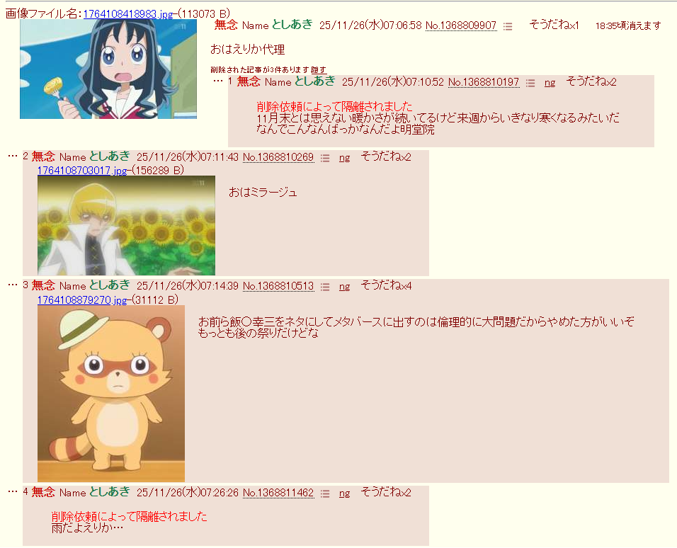 | … | 2無念Nameとしあき25/11/26(水)07:11:43No.1368810269そうだねx5 1764108703017.jpg-(156289 B) 削除依頼によって隔離されました |