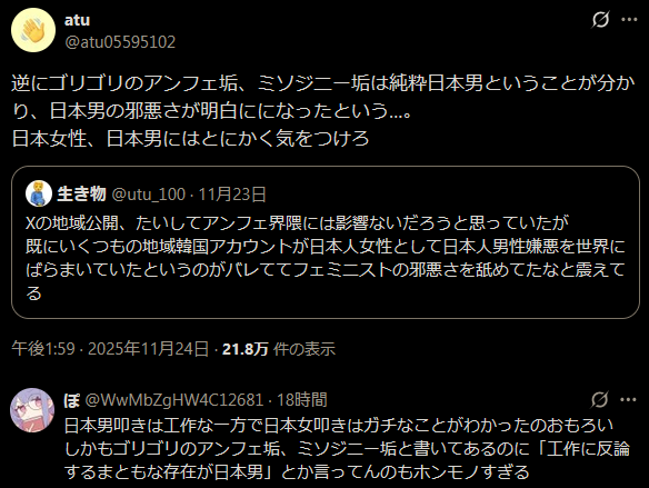 | … | 41無念Nameとしあき25/11/26(水)11:00:37No.1368835537+>>ネトウヨとパヨク双方工作がバレたのであった |
