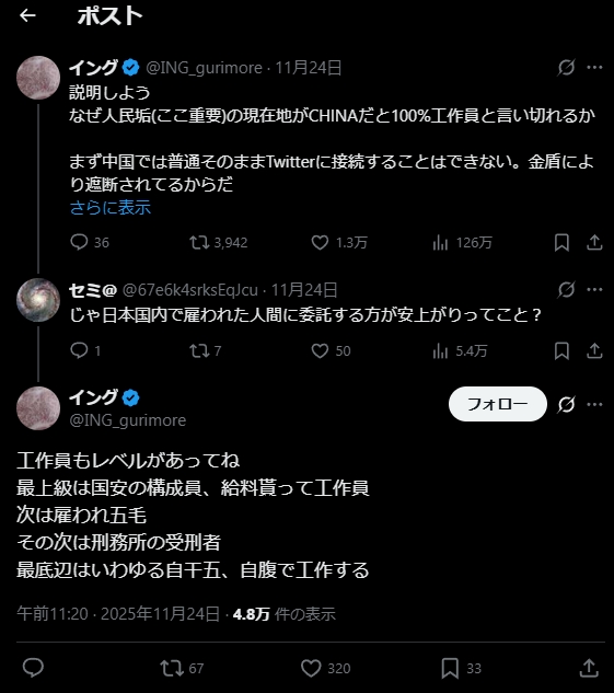 | … | 198無念Nameとしあき25/11/26(水)16:50:03No.1368892736+とりあえず中国を異様に擁護してるやつが頭おかしいのは理解できた |