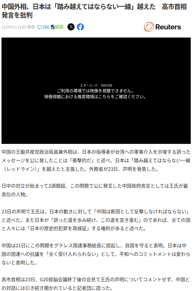 | … | 226無念Nameとしあき25/11/26(水)17:29:12No.1368899638+>具体的に中国北京政府と名指しで敵視する発言してるから問題視されたんだろうよ |